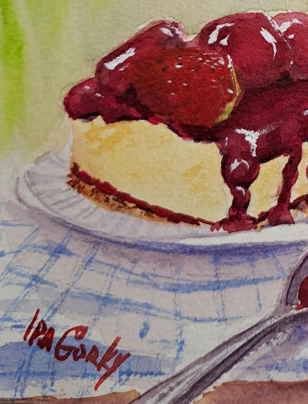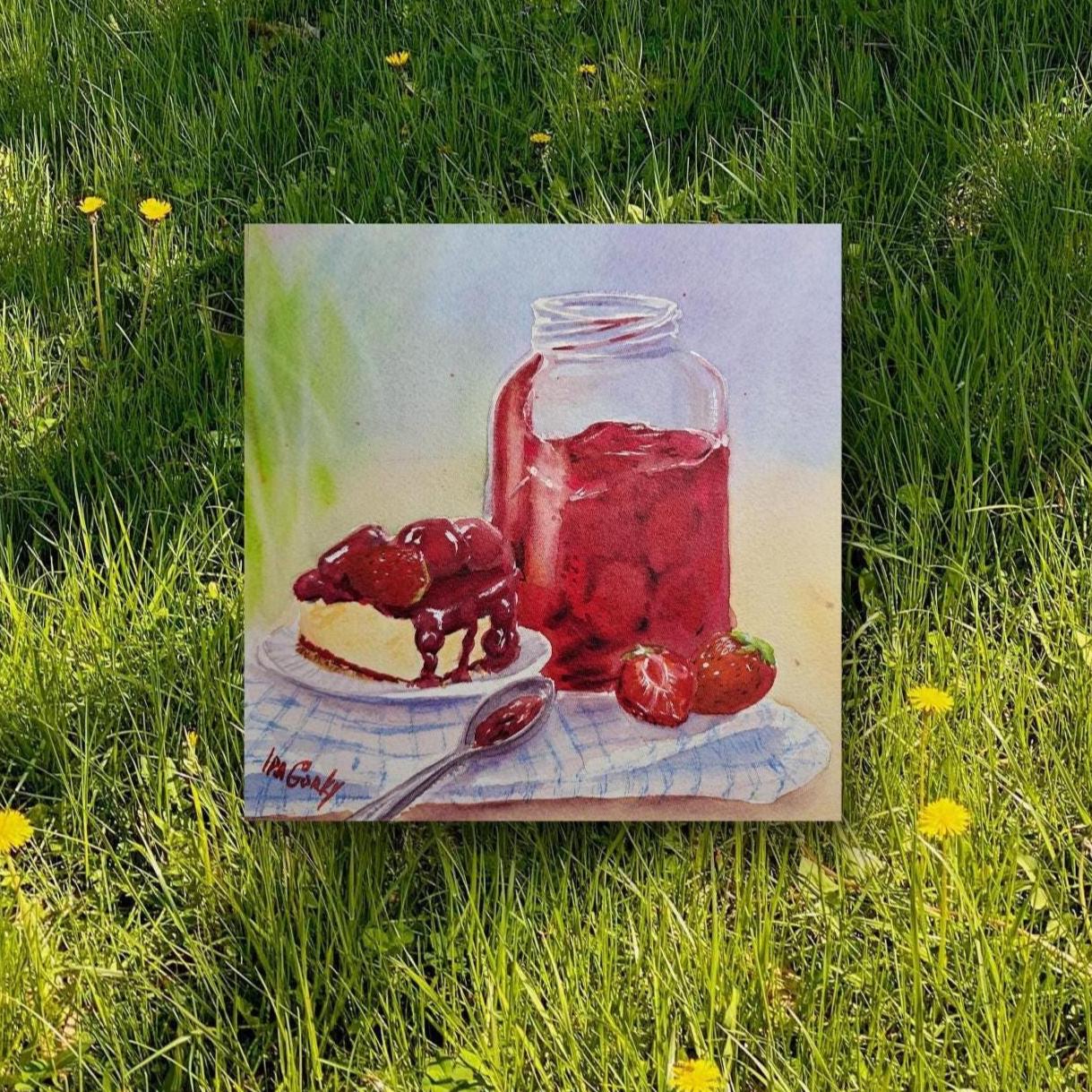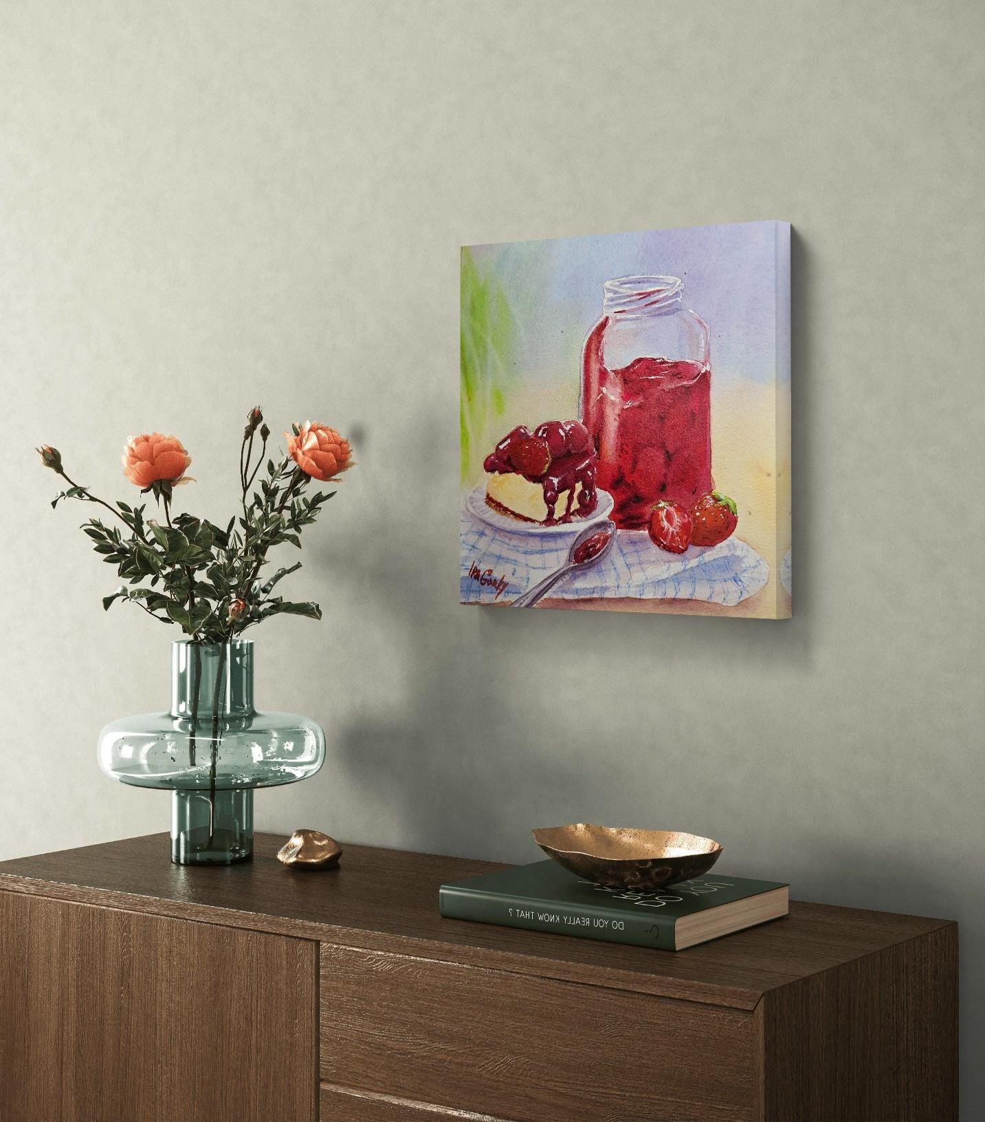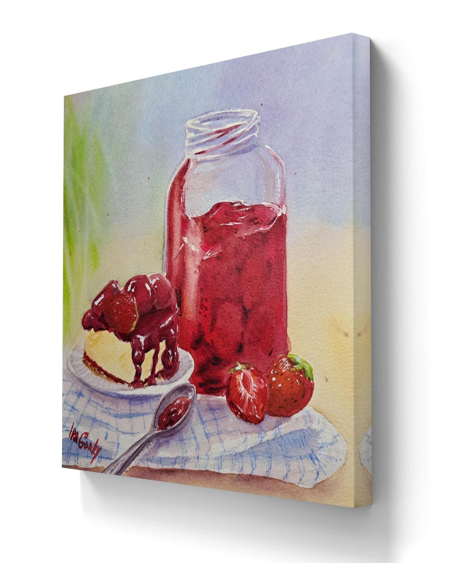 Strawberry jam and Cheesecake painting is that kind of still life original paintings that encapsulates the essence of a hearty breakfast, and brings a sense of comfort and indulgence.